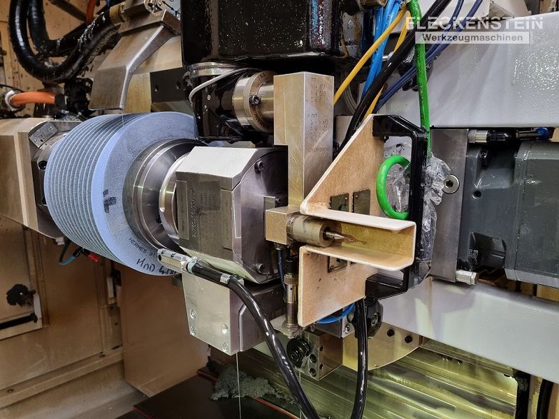 The machine is equipped with a rotary indexing table on which the tailstock, an NC dressing device and the workpiece spindle are mounted. It has a robot interface for automatic loading, but it can also be loaded manually if necessary.
