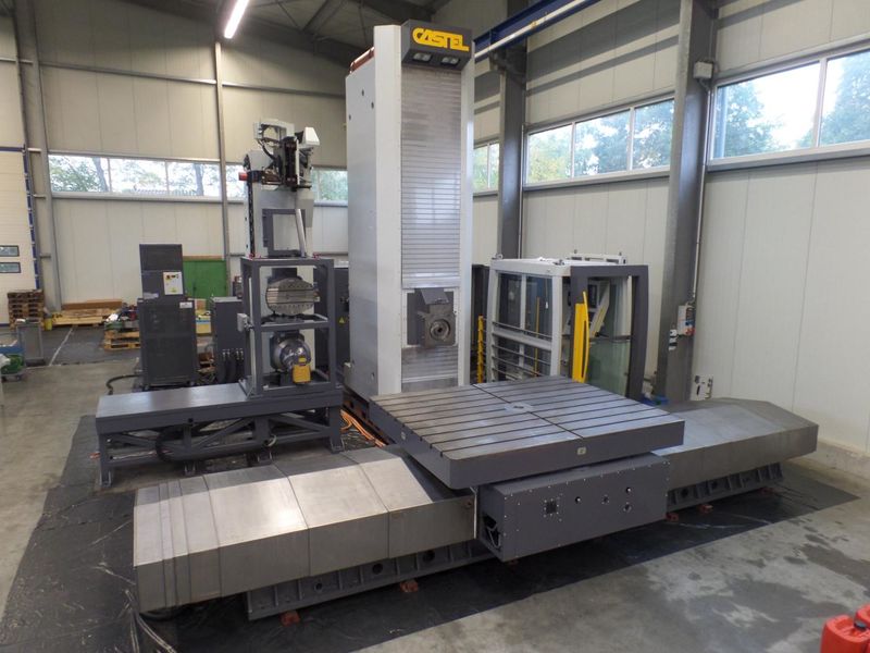 CASTEL RED is a transverse travelling column boring machine with a table that can be moved in longitudinal direction.
