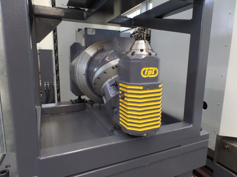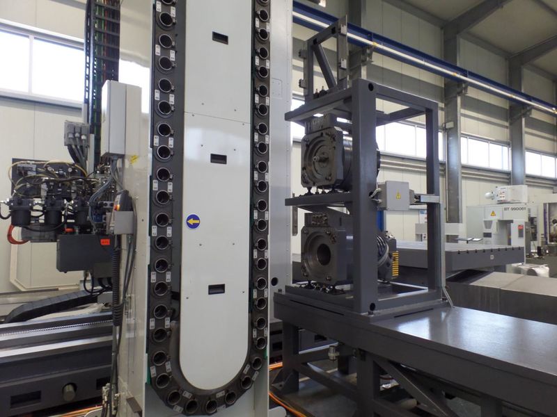 The FPT CASTEL RED is a transverse travelling column boring machine with a spindle diameter of 150mm and a 25to table that can be moved longitudinally. It offers maximum flexibility thanks to the extensive range of accessories. The machine is equipped with an infinitely variable 2-axis universal milling head and an electronically controlled D'Andrea boring head Ø630mm. Both heads can be selected by control command via an automated head change system and picked up by the drilling spindle. A 60-fold tool changer for tools with SK50 holder and vertically and horizontally movable operator's stand are also part of the equipment.