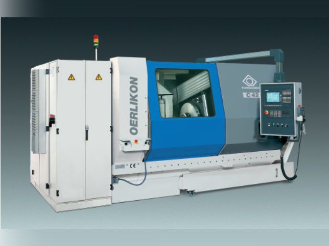 Die OERLIKON C42 ist eine Spiralkegelrad-Verzahnmaschine, vorgesehen für die Weichverzahnung von Spiralkegelrad- und Hypoidgetrieben. Die Maschine bearbeitet Werkstücke bis zur Größe Ø 425mm mit Normalmodul 1,5 – 8,5 mm im kontinuierlichen Verfahren und Werkstücke mit Normalmodul 1,5 – 9 mm im Einzelteilverfahren.
